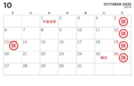 10月、11月の休診日のお知らせ