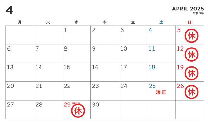 4月、5月の休診日のお知らせ